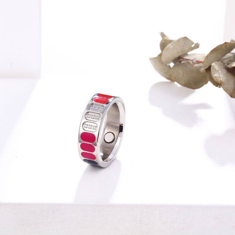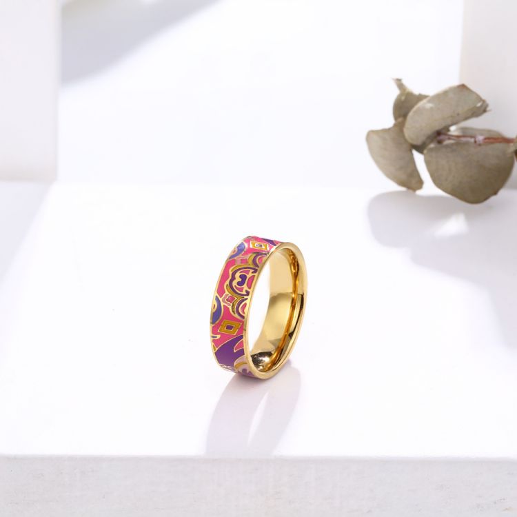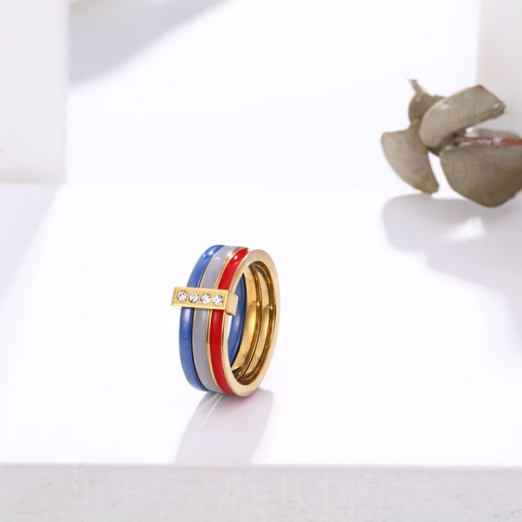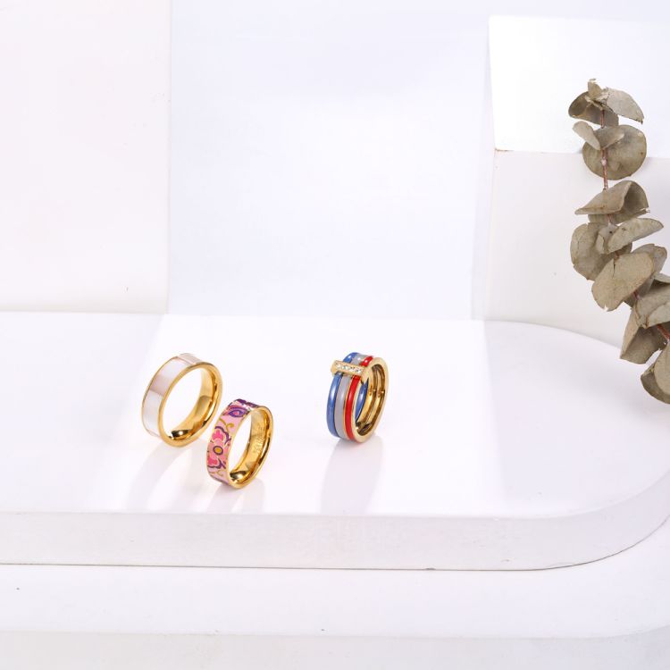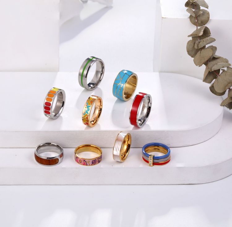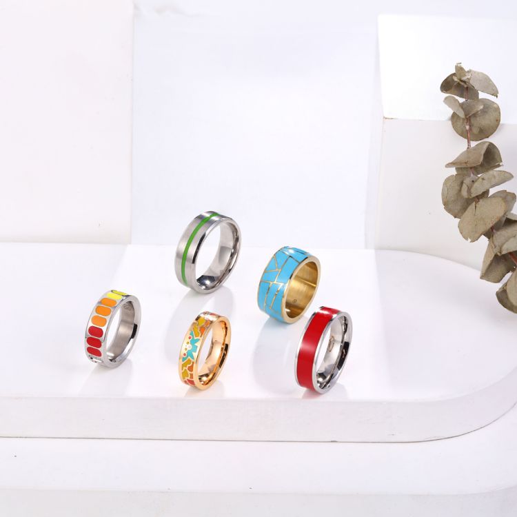 "光面不锈钢滴彩胶戒指抛光银色珐琅戒指"