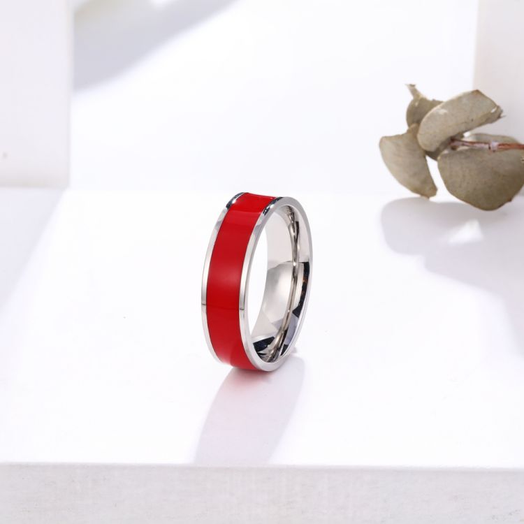 光面不锈钢滴彩胶戒指抛光银色珐琅戒指