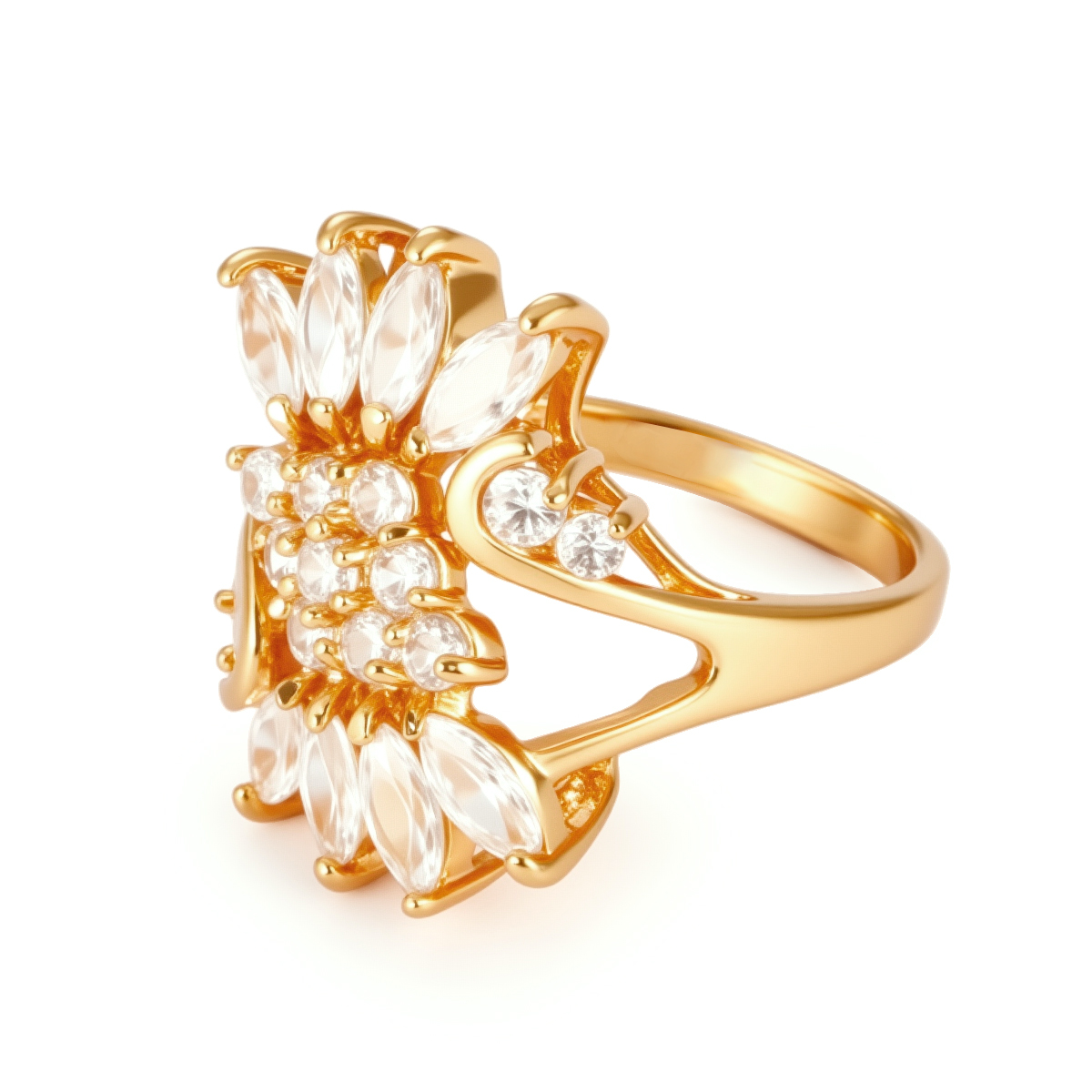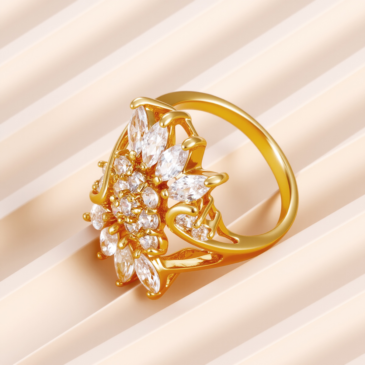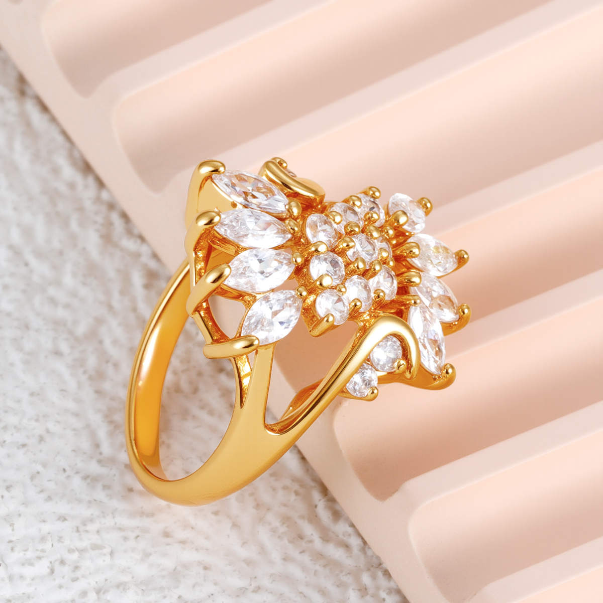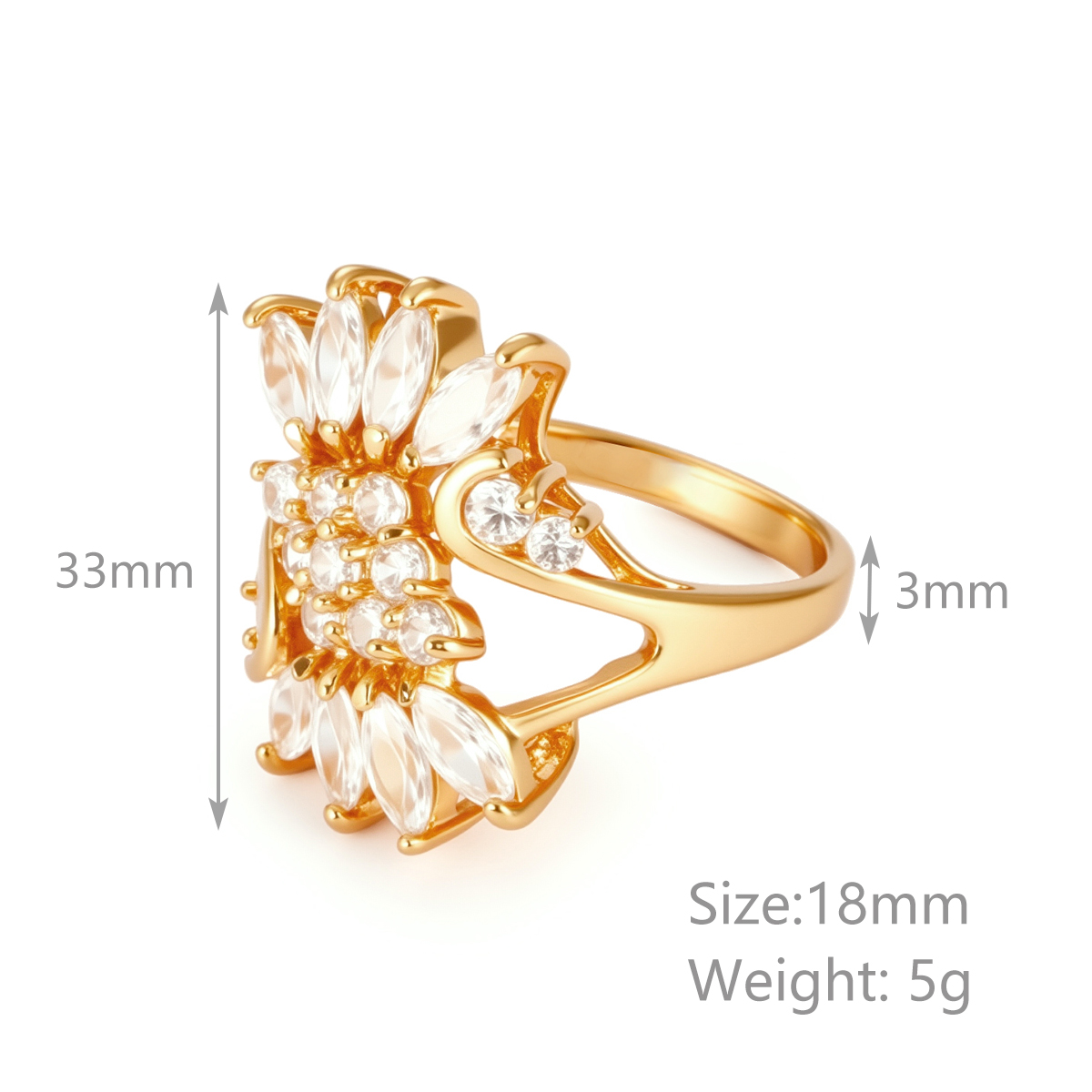 18k 金方晶锆石扇形环状戒指