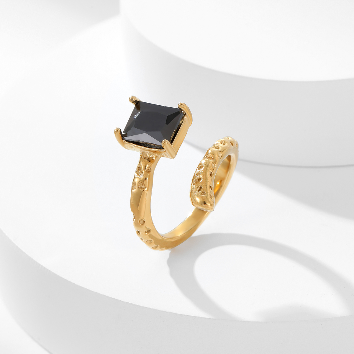 "方形不规则几何开口指环"