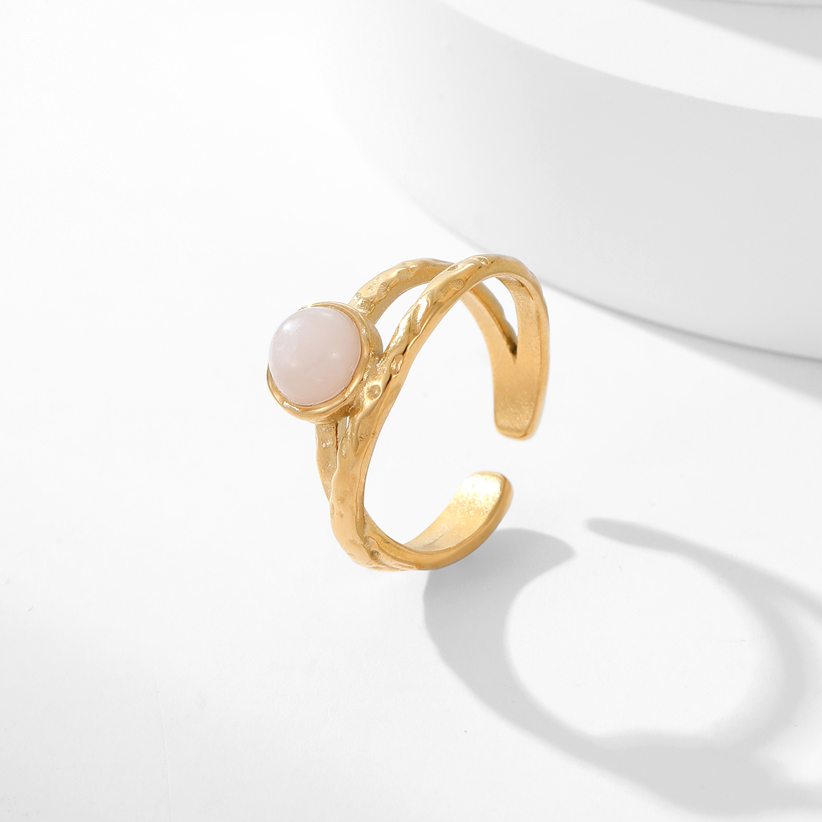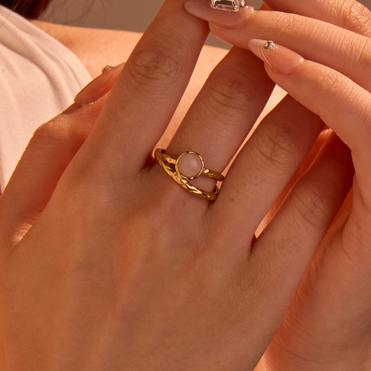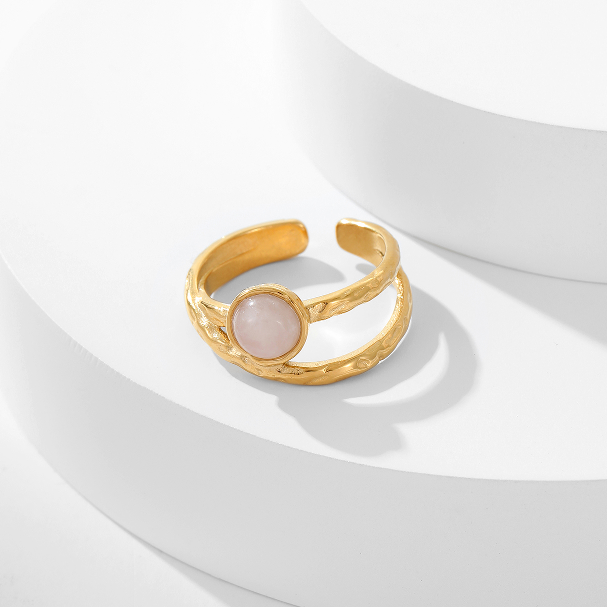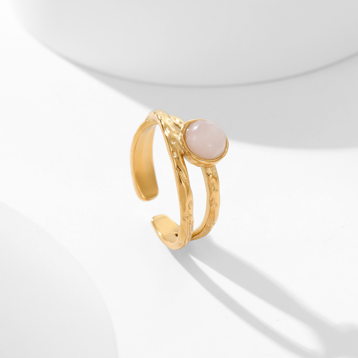 "精致天然宝石可调节开口戒指 "
