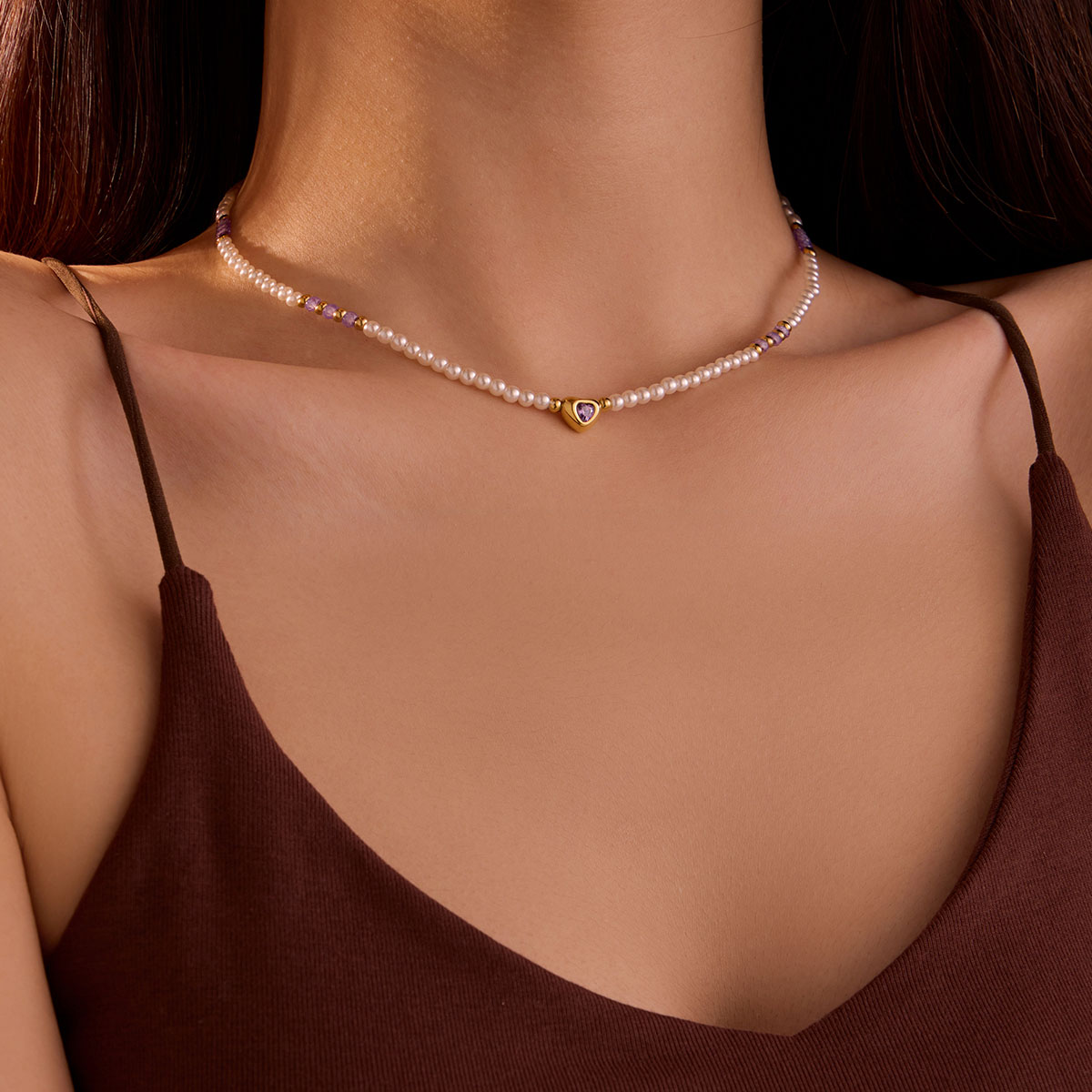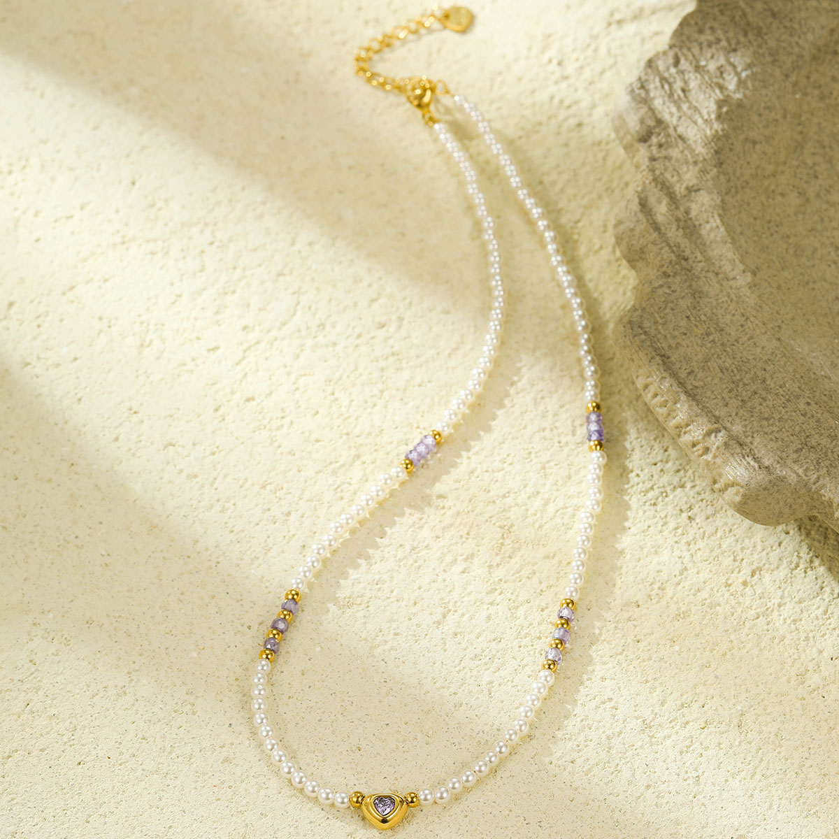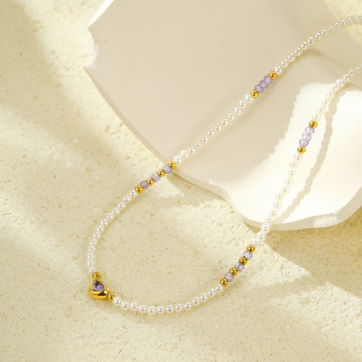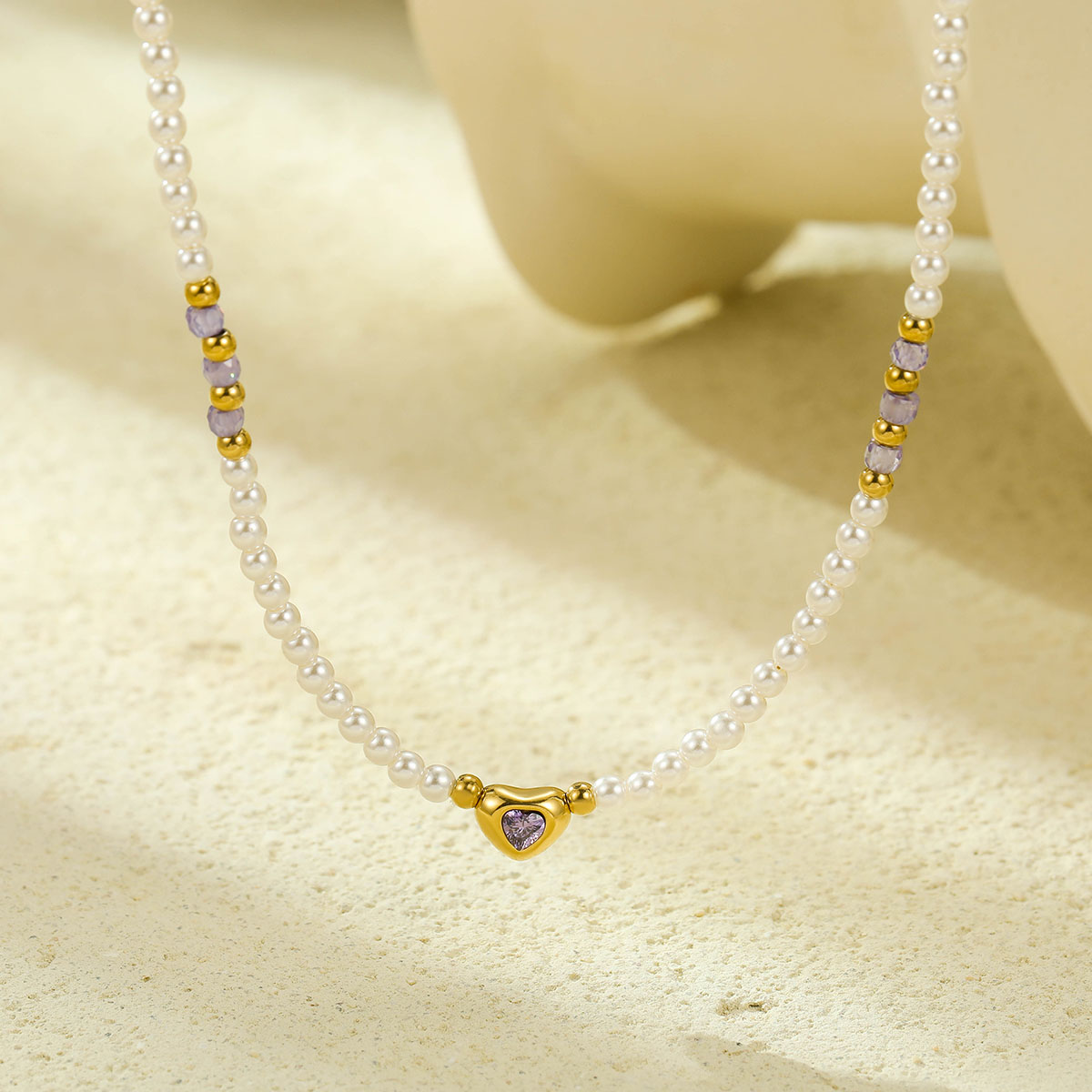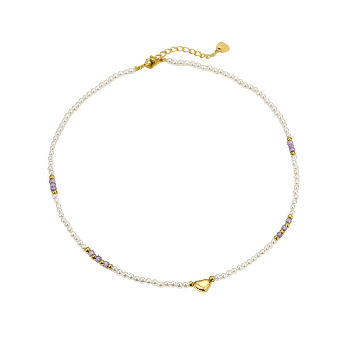 "18k镀金珍珠链心形吊坠"