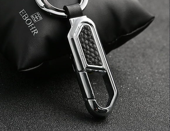 不锈钢饰品配件新款镶嵌真皮钥匙扣加工